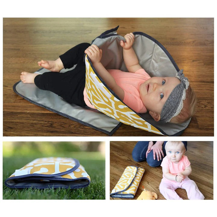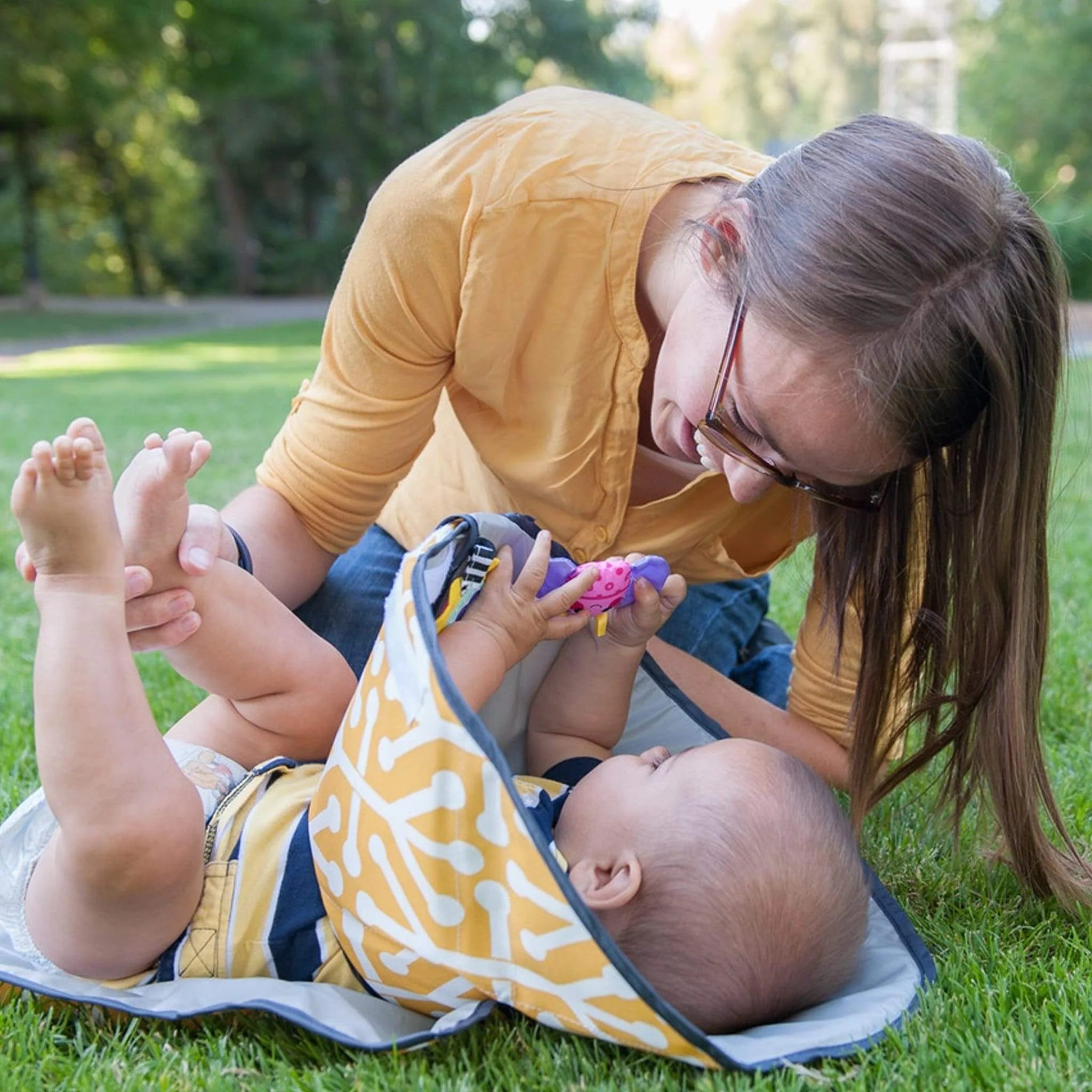 Le Baby Mat offre tous les avantages d'un matelas à langer portable, d'un sac à couche et d'une barrière pour accrocher des jouets et rediriger la curiosité de votre bambin ailleurs que dans sa couche...